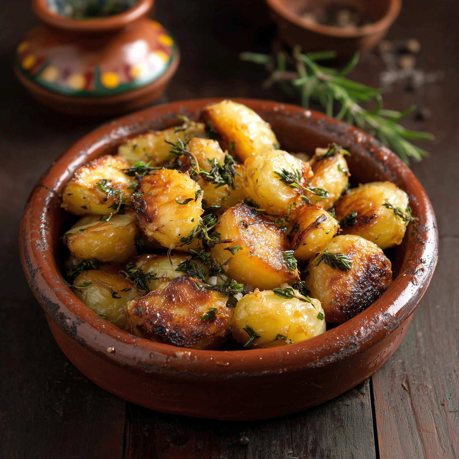 Pommes de terre dorées à la poêle, croustillantes à l’extérieur et fondantes à l’intérieur, relevées d’une pointe d’ail et d’herbes fraîches.