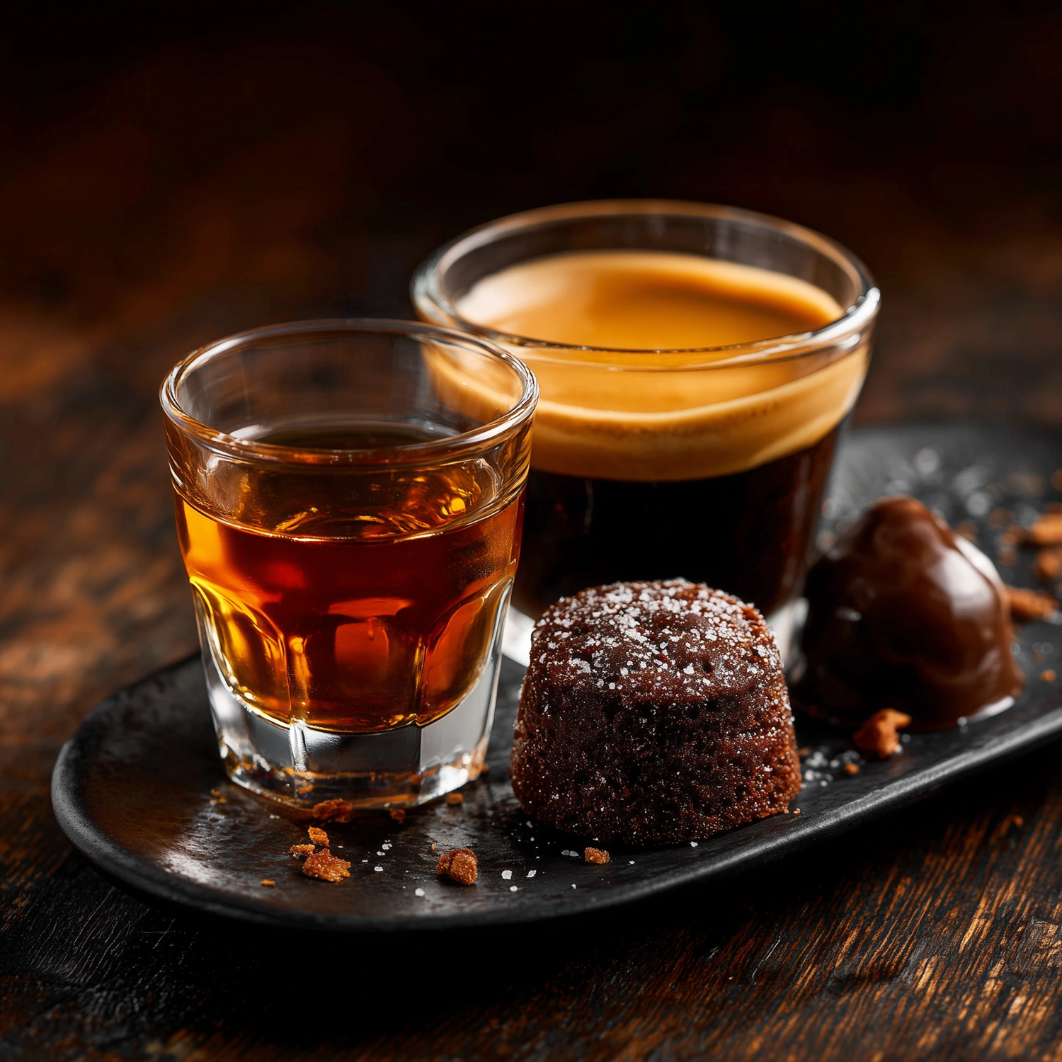 Café gourmand revisité avec un shot de rhum.